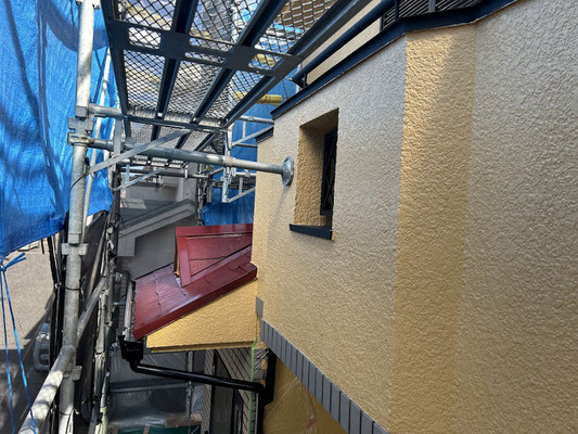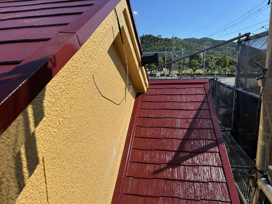 仕上げ塗料はニッペパーフェクトトップ3回塗、屋根縁切りタスペーサー、ファインシリコンベスト3回塗です。